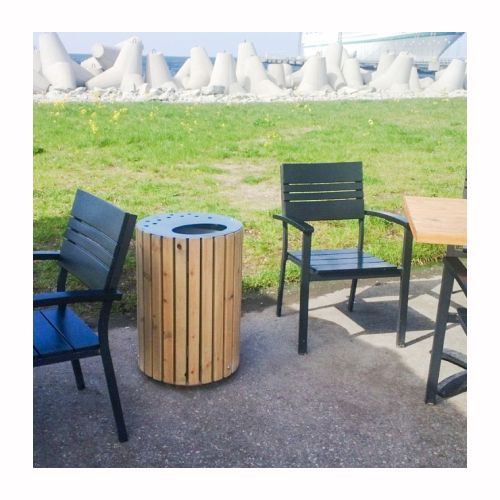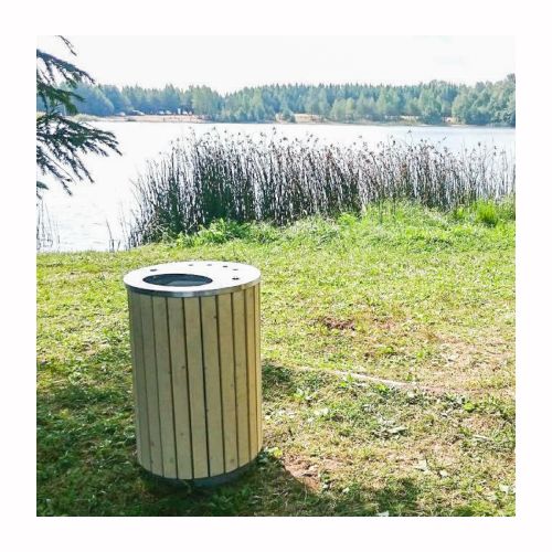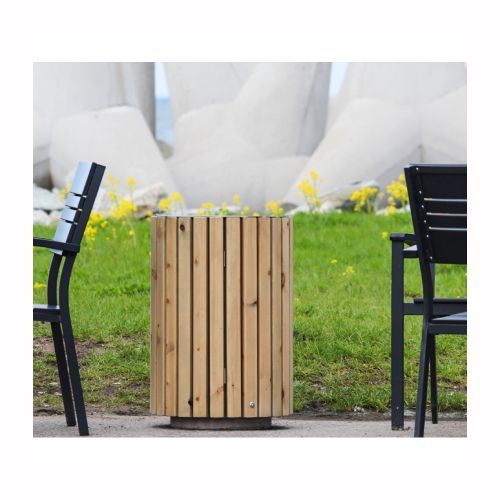 Koka atkritumu tvertne ar betona pamatni. Tilpums: 70l. Izmēri: d=460mm, augstums 700mm. Svars: 60kg. Iespējamie koka dēlīšu toņi: 5050, 5053, 5055, 5059, 5061, 5066, 5068, 5071, 5072, 5075, 5076, 5077, 5085, 5086, 5089.