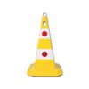 Konuss (vieglais), PP. Augstums 60cm. Aprīkots ar atstarotājiem. Krāsa: dzeltena. Pamatnes izmērs: 37x37cm. Caur konusu iespējams izvilkt cauri plastmasa ķēdi. Svars: 1,35kg.