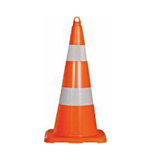 Konuss h=75cm. Krāsa: oranža. Materiāls: PVC. Divas baltas joslas (ar cilpu augšpusē). Konusa līmlentas atstarošanas klase: 2. Svars: 3.2kg.