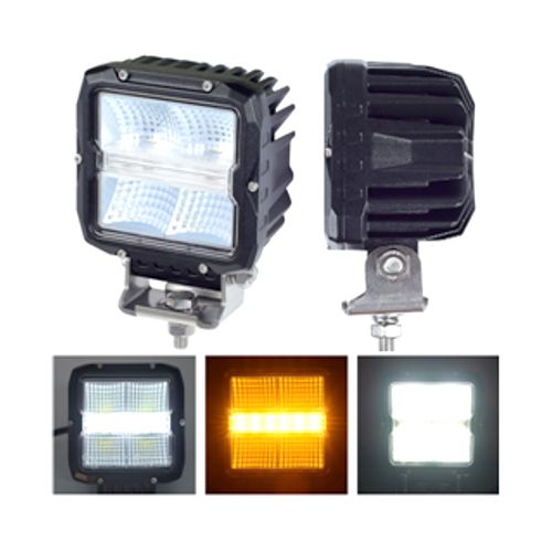 LED darba lukturis (balts)/brīdinājuma gaisma ar 3 režīmiem (brīdinājuma gaisma; maināmu režīmu brīdinājuma gaisma; darba gaisma). Jauda: 60W (4 LED x 15W). Spriegums: 12-24V. Stiprināšana ar skrūvi. Izturīgs alumīnija korpuss. Krāsas temperatūra: 6000K. 5 vadi, 8 darbības režīmi. No baltas līdz sarkanajai krāsai – brīdinājuma gaisma; no dzeltenas līdz sarkanajai krāsai var mainīt režīmus; no zilas līdz sarkanai – priekšējās pozīcijas lampa.