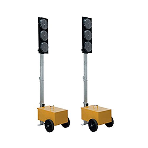 LED mobilais luksofors (komplektā 2gab.). Komplektā: vadības bloks. Barošanas avots: akumulators 12V (neietilpst komplektā!), gaismas avots: 3 LED optikas 200 mm diametrā (katrā LED optikā ir 120 LED diodes). Pašregulējoša spilgtuma kontrole. Dzelteni krāsots korpuss. LED optikas pamatne ir melnā krāsā. Izmēri: 25x75x2,2 cm. Voltāža: 12V.