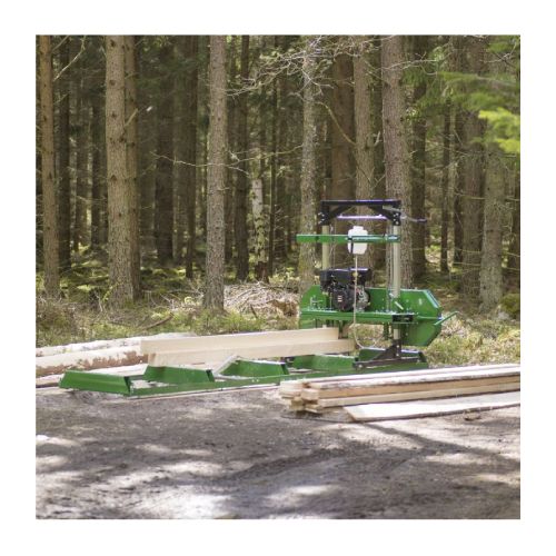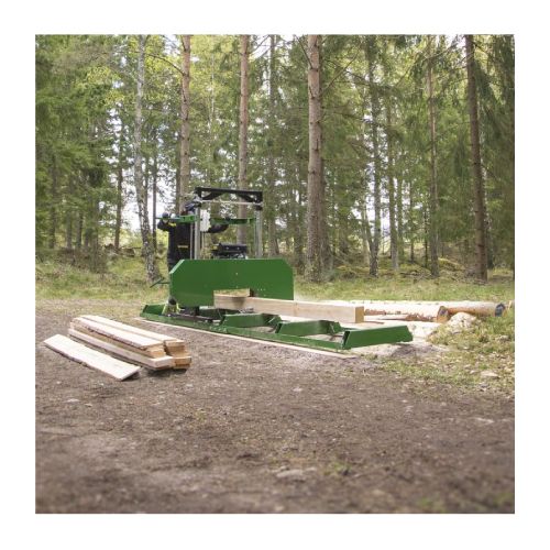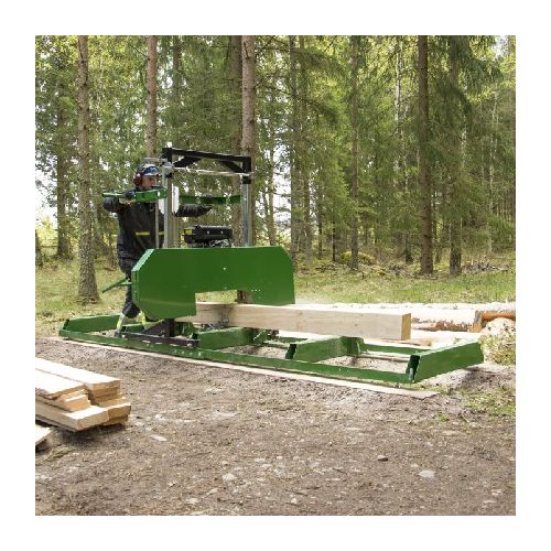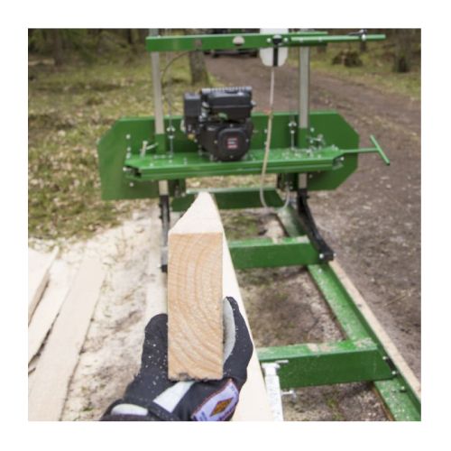 Lentzāģis (darbināms ar benzīna motoru). Praktisks lentzāģis ar viegli piestiprināmām sliežu sekcijām, lai pielāgotu vēlamo koka garumu, kā arī savilkšanas āķi, lai noturētu koku vietā. Ar ūdeni dzesējams lentzāģa asmenis un lentes vadotnes ar lodīšu gultņiem. Jaudīgs motors, spēka pārvads ar siksnu, koksnes biezuma regulēšana līdz milimetram. Ar horizontālo sliedi, regulējamām atbalsta kājām. Griešanas izmēri: maksimālais stumbra d=508mm, maksimālais dēļa platums 508mm, maksimālais dēļa biezums 114.3mm, maksimālais zāģa garums 2800mm (bez pagarinājuma). Zāģēšanas lentes izmēri: lentes augstums 32mm, lentes garums 3760mm, lentes biezums 0.9mm. Lentzāģa lente TPI 1.1 (zobs collā). Lentzāģa griešanas ātrums: 16.65m/s. Lentzāģa kopējie izmēri: garums 3970mm, platums 1800mm, augstums 1570mm. Svars: 247kg.