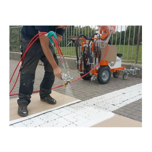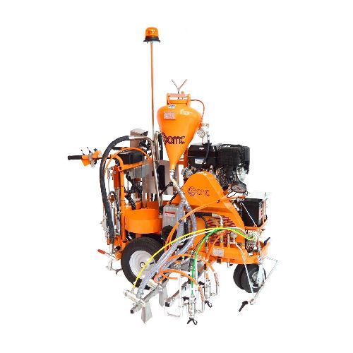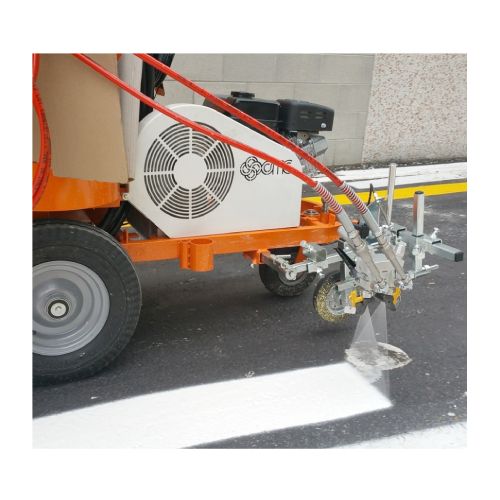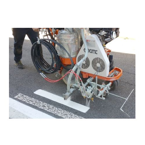 Līniju krāsošanas ierīce AR30PROP-2C. Darbināma ar benzīna dzinēju (Petrol 9HP). Piemērota iekštelpām un ceļu marķēšanai, kur vienlaikus var uzklāt 2 krāsas. Bezgaisa tehnoloģija. Spiediena stikla lodīšu tvertne 20l un automātiskās stikla lodīšu pistoles (iegādājamas papildus). Maksimālais līnijas platums: 500mm. Maksimālā izsmidzināšanas plūsma: 2×6.17l/minūtē. Stumjama ar rokām. Izmantojama divkomponentu krāsa. Aprīkota ar 2 noņemamām izsmidzināšanas pistolēm (sprausla līnijas platumam 100-150mm (citu izmēru sprauslas iegādājamas atsevišķi). Pistoles atbalsta ritenis (seko marķēšanas līnijai). Grozāms priekšējais ritenis – to var nobloķēt/atbloķēt ar sviru pie roktura uz stūres. Aprīkota ar darba gaismu un LED bākuguni. Izmēri: 1500x790x1250mm. Svars: 368kg. Iespējams pievienot speciālus ratiņus. Papildus iespējams iegādāties papildaprīkojumu. Fotoattēli neatspoguļo krāsošanas ierīces standarta versiju.