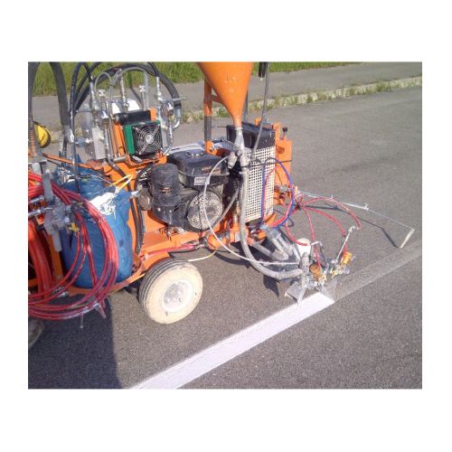Līniju krāsošanas ierīce AR40ITP-2C. Darbināma ar benzīna dzinēju (Petrol 9.5HP). Piemērota marķēšanai iekštelpām un ielu zīmēm, autostāvvietām, velojoslām, izmantojot 2 krāsas, uzklājiet 2-komponentu izsmidzināmu plastmasu. Bezgaisa tehnoloģija (bezgaisa hidrauliskais virzuļa sūknis). Spiediena stikla lodīšu tvertne 15.5l (iegādājama papildus). Maksimālais līnijas platums: 500mm. Maksimālā izsmidzināšanas plūsma: 2×5.9l/minūtē. Maksimālais darba spiediens 210 bāri. Kompresora gaisa plūsmas ātrums: 394l/min. Elektriskā startēšana. Izmantojama divkomponentu krāsa. Aprīkota ar izsmidzināšanas pistoli (sprausla līnijas platumam 100-200mm (citu izmēru sprauslas iegādājamas atsevišķi). Pistoles atbalsta ritenis (seko marķēšanas līnijai). Grozāms priekšējais ritenis – to var nobloķēt/atbloķēt ar sviru pie roktura uz stūres. Aprīkota ar darba gaismu un LED bākuguni. Izmēri: 2000x750x1200mm. Svars: 305kg. Iespējams pievienot speciālus ratiņus. Papildus iespējams iegādāties papildaprīkojumu. Fotoattēli neatspoguļo krāsošanas ierīces standarta versiju.