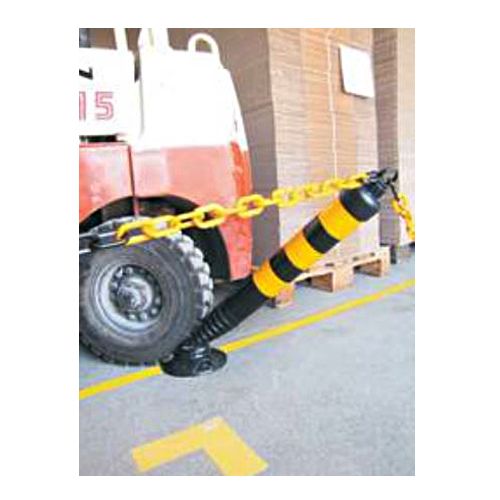 Stabiņš lokans, melns ar 3 dzeltenām atstarojošām lentām. Izmēri: garums 75cm, diametrs 8cm. UV izturīgs. Stiprināšana ar 3 skrūvēm. Skrūves neietilpst cenā! Svars: 1,32kg.
