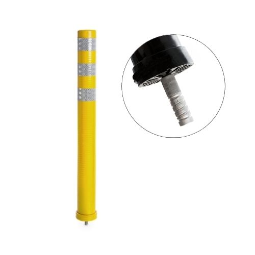 Stabiņš lokans, dzeltens. Izmēri: augstums 68cm, diametrs 8cm (pieejams arī 40cm, 80cm un 100cm augstumā). Izgatavots no poliuretāna. Aprīkots ar atstarojošām joslām. Apakšējā daļas vītne noskrūvējama, iemontējama pamatnē ar līmi (ķīmiju) vai iebetonējama, stabiņš pēc tam uzskrūvējams uz pamatnē iestrādātās vītnes. Izturīgs, elastīgs. Trieciena rezultātā atgriežas sākotnējā stāvoklī. Taisna vai noapaļota augšdaļa (pēc izvēles). Papildus opcija par papildus samaksu – apakšējā daļā josla ar stikla atstarotājiem. Svars: 1.2kg.