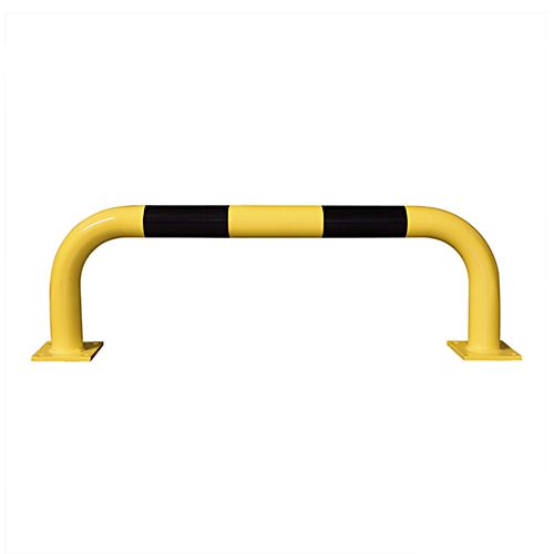 Metāla aizsargbarjera – dzeltena ar melnām atstarojošām joslām. Krāsota vai karsti cinkota un krāsota. Izmēri: platums 1000mm, augstums 350mm. Caurules diametrs – 76,1mm. Pamatnes izmērs: 160x140x10mm. Svars: 13kg. Stiprināšana ar 8 skrūvēm (nav iekļautas komplektā!).