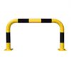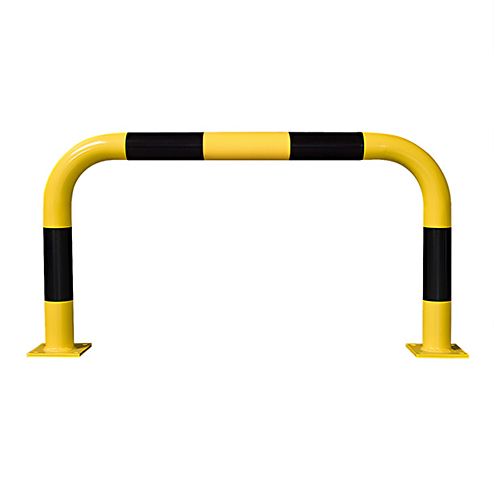 Metāla aizsargbarjera – dzeltena ar melnām atstarojošām joslām. Krāsota vai karsti cinkota un krāsota. Izmēri: platums 1000mm, augstums 600mm. Caurules diametrs – 76,1mm. Pamatnes izmērs: 160x140x10mm. Svars: 16kg. Stiprināšana ar 8 skrūvēm (nav iekļautas komplektā!).