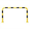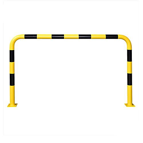 Metāla aizsargbarjera – dzeltena ar melnām atstarojošām joslām. Krāsota vai karsti cinkota un krāsota. Izmēri: platums 2000mm, augstums 1200mm. Caurules diametrs – 76,1mm. Pamatnes izmērs: 160x140x10mm. Svars: 25,5kg. Stiprināšana ar 8 skrūvēm (nav iekļautas komplektā!).