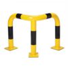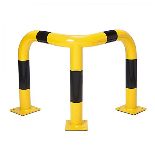 Metāla aizsargbarjera – dzeltena ar melnām uzlīmētām joslām. Izmēri: platums 600mm, dziļums 600mm, augstums 600mm. Caurules diametrs – 76,1mm, trubas sieniņu biezums 2.9mm. Krāsota vai karsti cinkota un krāsota. Stiprināšana ar 12 skrūvēm (nav iekļautas komplektā!)