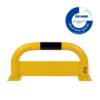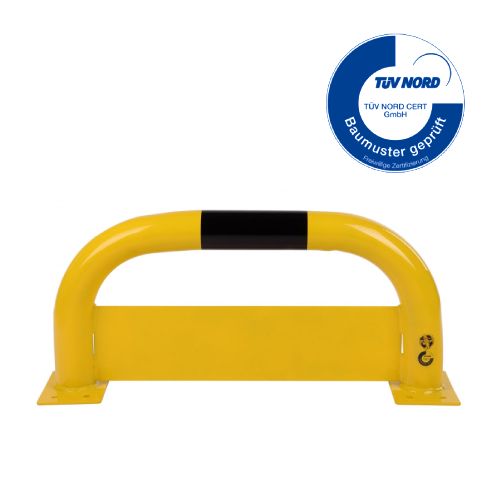 Metāla aizsargbarjera – dzeltena (RAL 1023) ar melnām atstarojošām joslām. Krāsota. Piemērota izmantošanai iekštlepās. Izmēri: platums 750mm, augstums 350mm, apakšējā aizsarga augstums 150mm, metāla biezums 3,2mm. Caurules diametrs – 76mm. Barjera izgatavota ar lieces tehnoloģiju – bez metinājuma šuvēm. Pamatnes izmērs: 120x195mm. Stiprināšana pie zemes ar 8 skrūvēm d=12,5mm (nav iekļautas komplektā!). TÜV sertifikāts. Svars: 11,4kg.