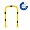 Metāla aizsargbarjera – dzeltena (RAL 1023) ar melnām atstarojošām joslām. Cinkota un krāsota. Piemērota izmantošanai ārā. Izmēri: platums 750mm, augstums 1200mm, metāla biezums 3,2mm. Caurules diametrs – 76mm. Barjera izgatavota ar lieces tehnoloģiju – bez metinājuma šuvēm. Pamatnes izmērs: 120x195mm. Stiprināšana pie zemes ar 8 skrūvēm d=12,5mm (nav iekļautas komplektā!). TÜV sertifikāts. Svars: 18,5kg.