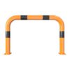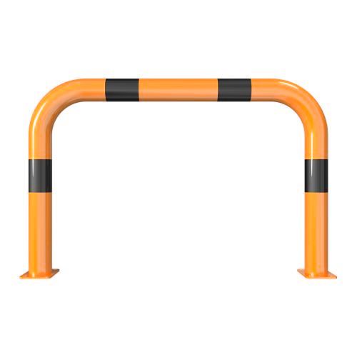Metāla aizsargbarjera – oranži dzeltena ar melnām joslām. Karsti cinkota un krāsota. Piemērota izmantošanai ārā. Izmēri: platums 750mm, augstums 1150mm. Caurules diametrs – 76mm. Stiprināšana pie zemes ar 8 skrūvēm (nav iekļautas komplektā!). Svars: 14.5kg.