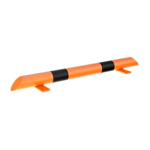 Metāla aizsargbarjera – oranži dzeltena ar melnām joslām. Krāsota. Piemērota izmantošanai iekšā. Izmēri: garums 800mm, augstums 86mm. Caurules diametrs – 76mm. Pamatnes izmērs: 200x50x10mm. Stiprināšana pie zemes ar 8 skrūvēm (nav iekļautas komplektā!). Svars: 5kg.