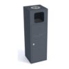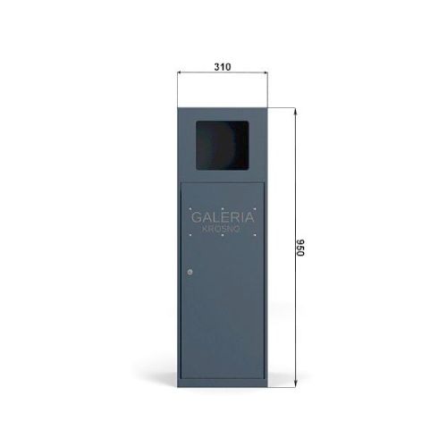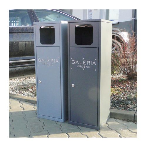 Metāla atkritumu tvertne ar pelnu trauku. Tilpums: 40l. Izmēri: platums 310mm, dziļums 300mm, augstums 950mm. Izgatavota no 1mm tērauda lokšņu materiāla. Viegla atkritumu iztukšošana (no sāna). Iespējams lāzergriezts uzraksts/ikona (par papildus samaksu). Cinkota un krāsota RAL tonī (pieejamie toņi: melna RAL 9005; grafīta pelēka RAL 7021; sudraba pelēka RAL 9006; brūna RAL 8011; dzeltena RAL 1023; zaļa RAL 6018; sarkana RAL 3002; tumši zila RAL 5002). Pieejams arī nerūsējošā tērauda variants. Piemērota parkos, skvēros, māju pagalmos, autobusu pieturās, gājēju celiņu malās u.c.