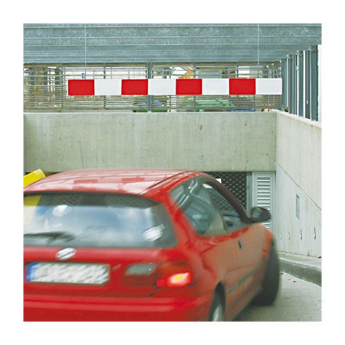 Metāla augstuma ierobežotājs, sarkans ar baltām atstarojošām joslām. Divpusējs. Izmēri: garums 2000mm, augstums 100mm. Komplektā nav iekļautas ķēdes ierobežotāja piestiprināšanai!