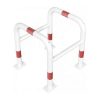 Metāla kvadrātveida aizsargbarjera – balta ar sarkanām joslām. Karsti cinkota. Montējama pie pamatnes ar 16 skrūvēm (nav iekļautas komplektā!). Izmēri: platums 800mm, dziļums 800mm, augstums 800mm. Caurules d=60mm, šķērseniskā caurule d=48mm. Svars: 24kg.
