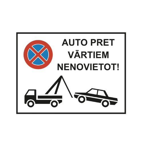 Metāla plāksne “Auto pret vārtiem nenovietot”, 320x240mm, biezums 1mm, 1. atstarošanas klase [H]