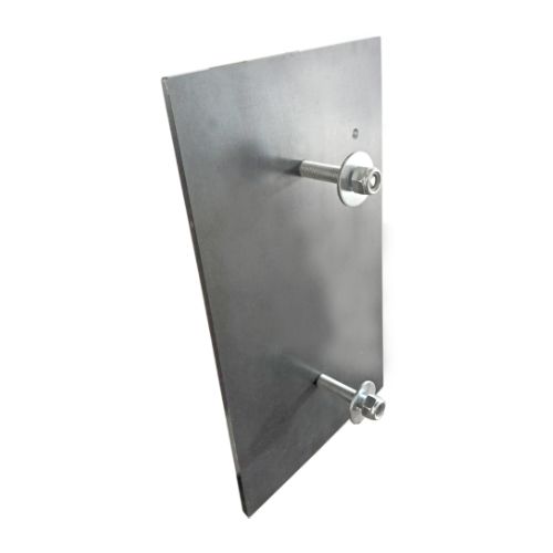 Metāla plāksne (stiprinājums) gumijas aizsargam. 3 caurumi plāksnes piestiprināšanai. Izmērs: garums 320mm, platums 90mm, biezums 6mm. Komplektā ietilpst: plāksne ar piemetinātiem vītņstieņiem, paplāksnēm un uzgriežņu skrūvēm.