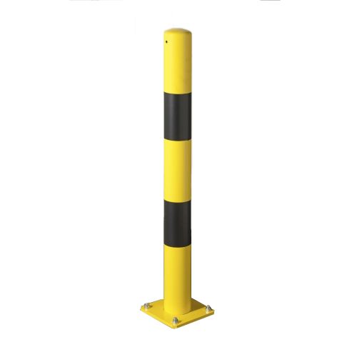Metāla stabiņš – dzeltens ar melnām brīdinošām joslām. Cinkots un krāsots. Izmēri: caurules d=89mm, augstums 900mm, metāla biezums 3.2mm. Pamatnes izmērs: 180x180x8mm. Stiprināšana pie zemes ar 4 skrūvēm d=13mm. Lai stabiņu padarītu vienmērīgi izturīgāku, to var piepildīt ar betonu. Piemērots izmantošanai iekštelpās un ārā.