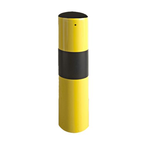 Metāla stabiņš – dzeltens ar melnām brīdinošām joslām. Noņemams. Cinkots un krāsots ar melnām brīdinošām joslām. Izmēri: caurules d=159mm, augstums 600mm, metāla biezums 4.5mm. Lai stabiņu padarītu vienmērīgi izturīgāku, to var piepildīt ar betonu.