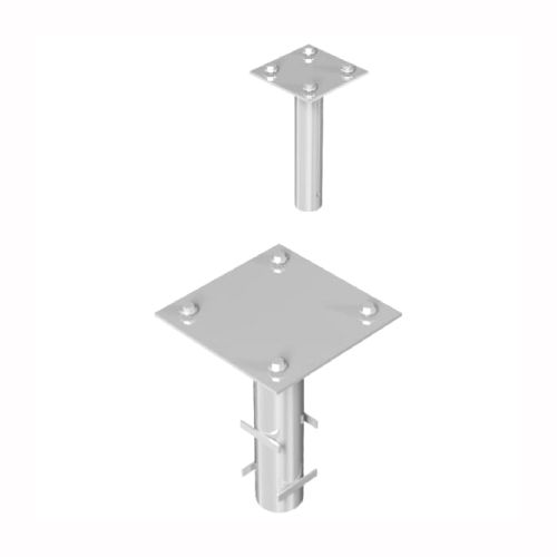Metāla stiprinājumu komplekts (2gab.) ievietošanai betonā (ar iekļautām skrūvēm). Piemērots H7 tipa paceļamajām barjerām galvenā atbalsta staba iebetonēšanai. zmēri: galvenā staba stiprinājuma garums 360mm, platums 360mm, augstums 510mm, biezums 8mm, iekšējās caurules d=100mm; atbalsta staba stiprinājuma garums 220mm, platums 220mm, augstums 410mm, biezums 8mm, iekšējās caurules d=70mm. Izgatavots no karsti cinkota tērauda. Komplektā ar M16 skrūvēm (4gab.). Svars: 9kg.