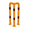 Metāla stūru aizsargbarjera – oranži dzeltena ar melnām joslām. Karsti cinkota un krāsota. Pie pamatnes skrūvējama ar 12 skrūvēm (skrūves neietilpst komplektā). Piemērota izmantošanai ārā. Izmēri: platums 600mm, augstums 1150mm. Caurules diametrs – 76mm. Svars: 24kg.