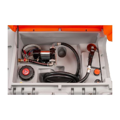 Mobilā dīzeļdegvielas uzpildes un uzglabāšanas tvertne CUBE MOBIL Basic ar 12V Bipump elektrisko sūkni (500W) un automātisko uzpildes pistoli. Ar veramu tvertnes vāku. Viensienu tvertne. Elektriskais sūknis, 85l/min. 4m dīzeļdegvielas uzpildes šļūtene (d=25mm). Tilpums: 980l. Polietilēna konteiners ar integrētu rokturi un iekrāvēja transportēšanas ejām, iebūvētu dozēšanas sprauslas turētāju, iebūvēti gaisa spiediena pašregulējošie vārsti. Tvertnes izmēri: 1300x1120x1180mm. Komplektā neietilpst: šļūtenes rullis, plūsmas skaitītājs un filtrs. Pieejami arī citi varianti. Svars: 123kg.