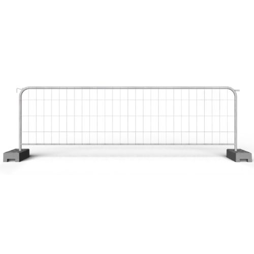 Mobilais zemprofila sieta žogs ar noapaļotiem stūriem pagaidu norobežojumiem (L5T). izmērs: augstums 1150mm, garums 3520mm, sieta acs izmērs: 250x120mm, vertikālās caurules izmērs: 38x1mm, horizontālās caurules izmērs: 25x1mm, vertikālās/horizontālās stieples diametrs: 3mm. Svars: 9.6kg.