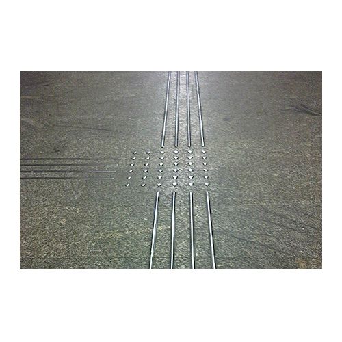 Nerūsējošā tērauda loksne. Izmēri: garums 2000mm, platums 20mm, augstums 1,5 – 5mm, montāžas vītnes d-8mm. Stiprināšana ar 7 skrūvēm. Nodrošina taustes marķējumu zonas uz virsmām, lai brīdinātu neredzīgus, vājredzīgus cilvēkus. Loksnes izmanto ielu krustojumos, dzelzceļa stacijās, pieturās, gājēju pārejās, slimnīcās, viesnīcās, tirdzniecības centros, lidostās, publiskās vietās u.c. Izgatavots no nerūsējošā tērauda. Nodilumizturīgs, aizsargāts no UV stariem, vides piesārņojuma un sāls.