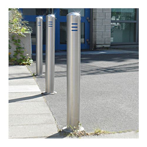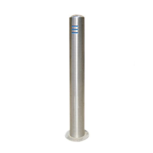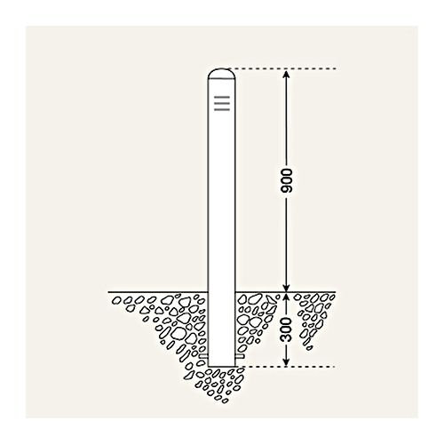 Nerūsējošā tērauda stabs BERLIN TREND – betonējams, d=108mm, h=900mm (300mm zem pamatnes), ar zilām iegriezuma līnijām
