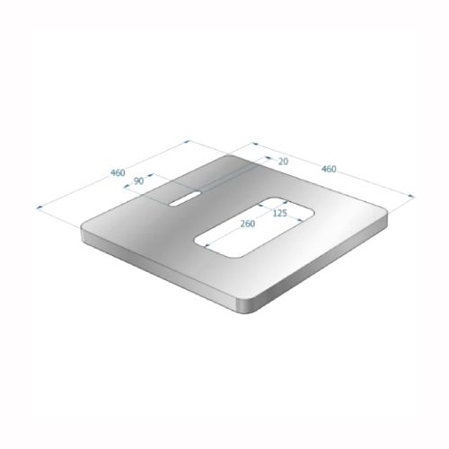 Nerūsējošā tērauda vāks ar atkritumu tvertnes atverēm. Izmēri: 460x460mm, h=20mm, atveru izmēri: 260x125mm un 90x20mm.