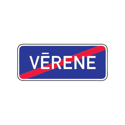 Norādījuma zīme Nr.522/Pilsētas vai ciema nosaukuma beigas. Zīmes izmērs ir atkarīgs no burtu daudzuma (nosaukuma garuma) un burtu augstuma. Minimālais izmērs 1000x400mm.