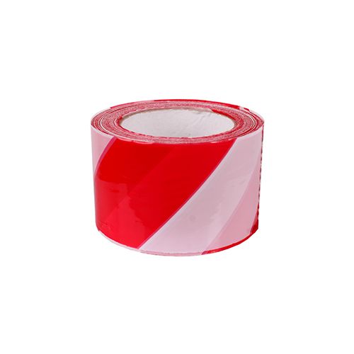 Norobežojoša lenta, sarkana ar baltu. Izmēri: garums 200mm, platums 75mm, biezums 80 mikroni.