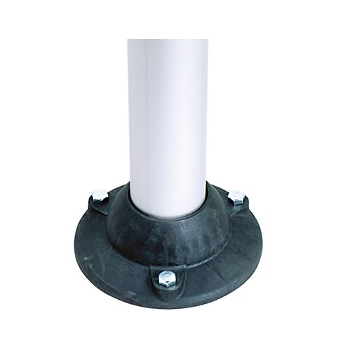 Norobežošanas lenta ar statīvu un pamatni. Lentas garums: 3m, lentas krāsas: melna/sudraba/melna. Statīva krāsa: balta, statīva augstums 895mm, materiāls: krāsots, lakots alumīnijs d=60mm, statīva pamatnes d=150mm. Stiprināšana pie pamatne sar 3 skrūvēm. Svars: 2,3kg.