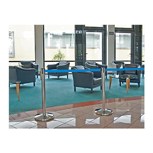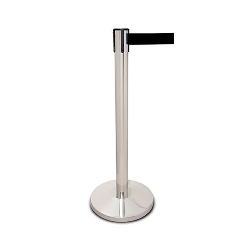 Norobežošanas lenta ar nerūsējošā tērauda statīvu un pamatni. Statīva augstums: 915mm, statīva d=63mm, statīva pamatnes d=350mm. Lentas krāsa: melna, lentas maksimālais garums: 2,5m (lenta rullējas atkarībā no nepieciešamā garuma). Kopējais svars: 10,5kg. Piemērota gājēju un rindu plūsmu organizēšanai, telpu zonēšanai, izstāžu norobežošanai. Pielietojama lidostās, bankās, viesnīcās, izstāžu zālēs, muzejos, tirdzniecības vietās, ofisos u.c. sabiedriskās vietās.