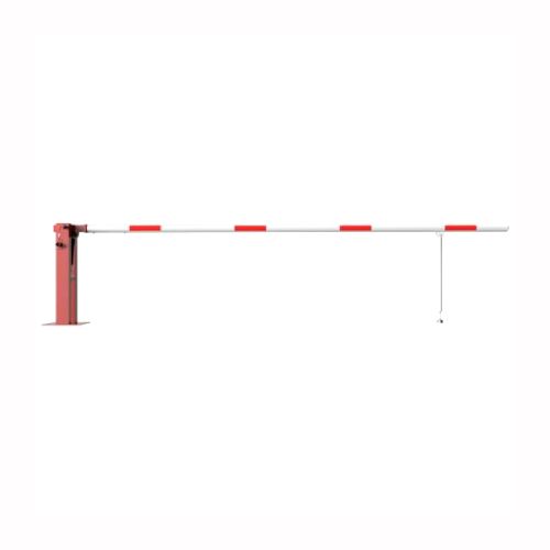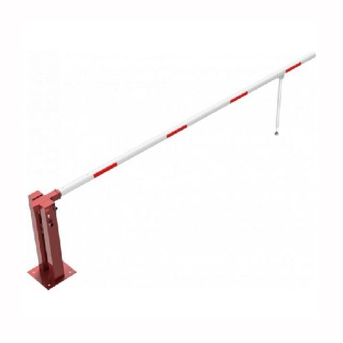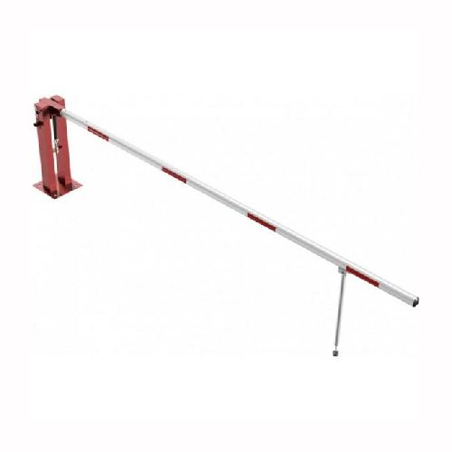 Paceļama barjera ar pneimatisko atsperi un eņģu atbalsta kāju. Ar trīsstūrveida slēdzeni un Euro profila cilindra slēdzeni pie galvenā balsta. Pieejama arī ar piekaramo atslēgu, trijstūrveida slēdzeni vai trijstūrveida slēdzenes mehānismu/euro-profila cilindra slēdzeni). Stiprināma pie pamatnes ar skrūvēm (iespējams arī iebetonēt – papildus nepieciešams betonējams enkurs: 360x360x8mm). Ieteicamie betona pamata izmēri galvenajam vertikālajam stabam 550x550x900mm. Izmēri: kopējais platums = 4000mm + 180mm, vidējais (brīvais) platums 4000mm, vertikālais galvenais stabs no 120x80mm tērauda caurules, pamatplāksne galvenajam stabam 360x360x8mm (karsti cinkots un krāsots sarkans), eņģu atbalsta kāja no alumīnija caurules, horizontālā barjera (alumīnija caurule ar biezām sieniņām) d=80mm, balta ar sarkanām atstarojošām joslām, augstums virs zemes 950mm. Bloķēšanas mehānisms: pie atbalsta staba, horizontālo stabu var fiksēt atvērtā un slēgtā stāvoklī. Iespējams papildus iegādāties galvenās atbalsta kājas enkurus montāžai betonā ar skrūvēm un metāla trosi, kā arī eiro profila cilindra slēdzene ar piespiedu aizvēršanu. Svars: 49.5kg.