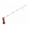 Paceļama barjera ar pneimatisko atsperi un eņģu atbalsta kāju. Ar trīsstūrveida slēdzeni un Euro profila cilindra slēdzeni pie galvenā balsta. Pieejama arī ar piekaramo atslēgu, trijstūrveida slēdzeni vai trijstūrveida slēdzenes mehānismu/euro-profila cilindra slēdzeni). Stiprināma pie pamatnes ar skrūvēm (iespējams arī iebetonēt – papildus nepieciešams betonējams enkurs: 360x360x8mm). Ieteicamie betona pamata izmēri galvenajam vertikālajam stabam 550x550x900mm. Izmēri: kopējais platums = 5000mm + 180mm, vidējais (brīvais) platums 5000mm, vertikālais galvenais stabs no 120x80mm tērauda caurules, pamatplāksne galvenajam stabam 360x360x8mm (karsti cinkots un krāsots sarkans), eņģu atbalsta kāja no alumīnija caurules, horizontālā barjera (alumīnija caurule ar biezām sieniņām) d=80mm, balta ar sarkanām atstarojošām joslām, augstums virs zemes 950mm. Bloķēšanas mehānisms: pie atbalsta staba, horizontālo stabu var fiksēt atvērtā un slēgtā stāvoklī. Iespējams papildus iegādāties galvenās atbalsta kājas enkurus montāžai betonā ar skrūvēm un metāla trosi, kā arī eiro profila cilindra slēdzene ar piespiedu aizvēršanu. Svars: 51.5kg.