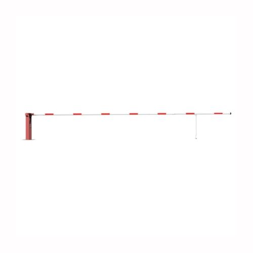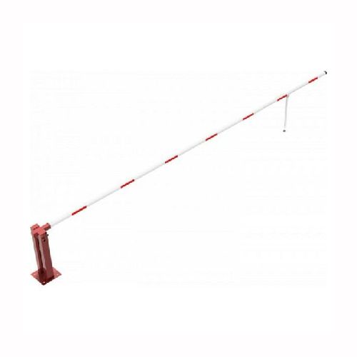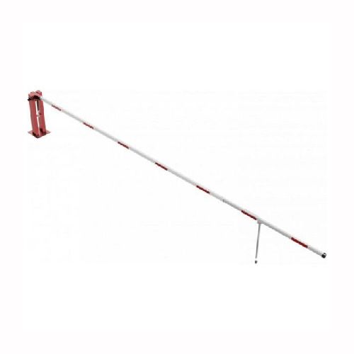 Paceļama barjera ar pneimatisko atsperi un eņģu atbalsta kāju. Atvēršana/aizslēgšana ar trijstūrveida slēdzeni (pieejama arī ar piekaramo atslēgu, euro-profila cilindra slēdzeni vai trijstūrveida slēdzenes mehānismu/euro-profila cilindra slēdzeni). Stiprināma pie pamatnes ar skrūvēm (iespējams arī iebetonēt – papildus nepieciešams betonējams enkurs: 360x360x8mm). Ieteicamie betona pamata izmēri galvenajam vertikālajam stabam 550x550x900mm. Izmēri: kopējais platums = 7000mm + 180mm, vidējais (brīvais) platums 7000mm, vertikālais galvenais stabs no 120x80mm tērauda caurules, pamatplāksne galvenajam stabam 360x360x8mm (karsti cinkots un krāsots sarkans), eņģu atbalsta kāja no alumīnija caurules, horizontālā barjera (alumīnija caurule ar biezām sieniņām) d=80mm, balta ar sarkanām atstarojošām joslām, augstums virs zemes 950mm. Bloķēšanas mehānisms: pie atbalsta staba, horizontālo stabu var fiksēt atvērtā un slēgtā stāvoklī. Iespējams papildus iegādāties galvenās atbalsta kājas enkurus montāžai betonā ar skrūvēm un metāla trosi, kā arī eiro profila cilindra slēdzene ar piespiedu aizvēršanu. Svars: 55kg.