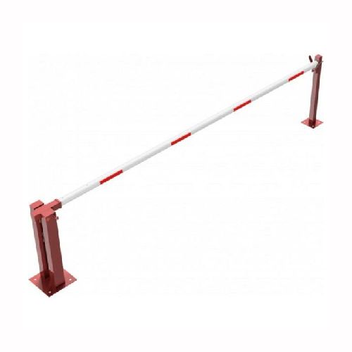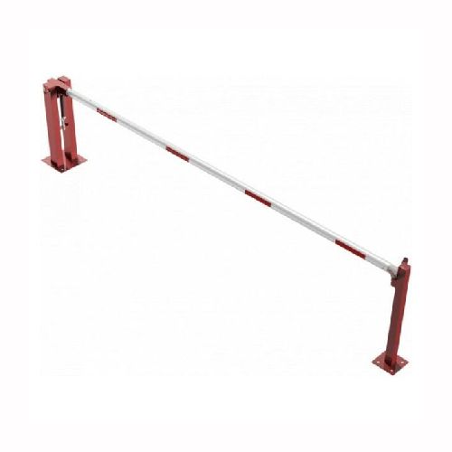 Paceļama barjera ar pneimatisko atsperi un fiksētu atbalsta stabu. Atvēršana/aizslēgšana ar euro-profila cilindra slēdzeni (pieejama arī ar piekaramo atslēgu vai trijstūrveida slēdzeni). Stiprināma pie pamatnes ar skrūvēm (iespējams arī iebetonēt – papildus nepieciešams betonējamie enkuri: 360x360x8mm un 220x220x8mm). Ieteicamie betona pamata izmēri galvenajam vertikālajam stabam 550x550x900mm; atbalsta stabam – 400x400x900mm. Izmēri: kopējais platums = 4000mm + 180mm, vidējais (brīvais) platums 4000mm, vertikālais galvenais stabs no 120x80mm tērauda caurules (karsti cinkots un krāsots sarkans), atbalsta stabs no tērauda caurules 70x70mm ar pamatnes plāksni 220x220x8mm, horizontālā barjera (alumīnija caurule ar biezām sieniņām) d=80mm, balta ar sarkanām atstarojošām joslām, augstums virs zemes 950mm. Bloķēšanas mehānisms: pie atbalsta staba, horizontālo stabu var fiksēt atvērtā un slēgtā stāvoklī. Iespējams papildus iegādāties atbalsta kāju enkurus montāžai betonā ar skrūvēm un metāla trosi. Svars: 57kg.
