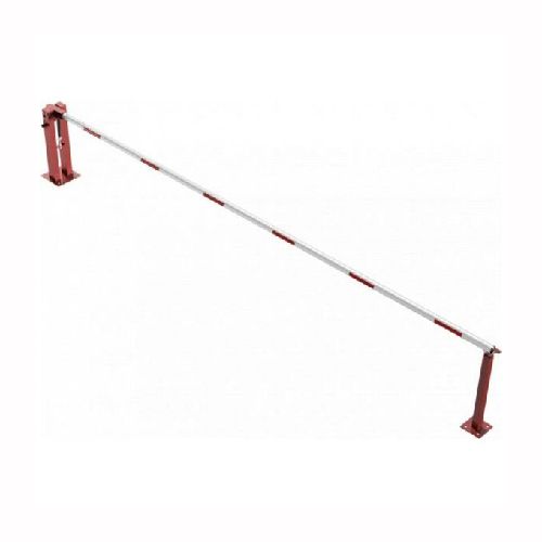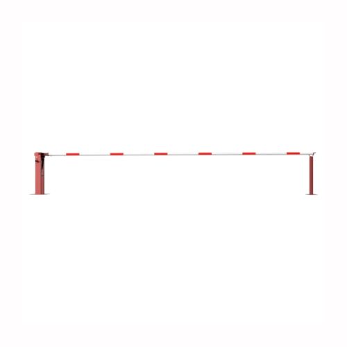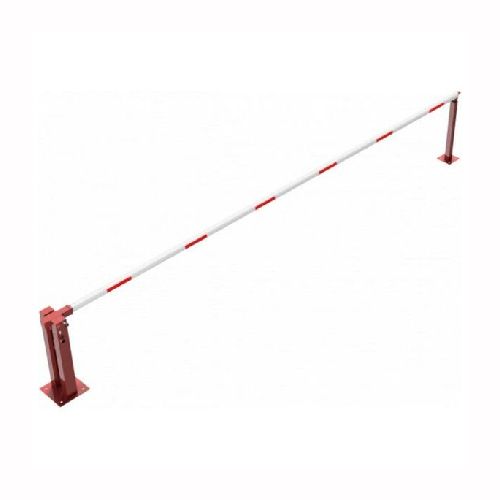 Paceļama barjera ar pneimatisko atsperi un fiksētu atbalsta stabu. Ar trīsstūrveida slēdzeni un Euro profila cilindra slēdzeni pie galvenā balsta. Barjera pieejama arī ar piekaramo atslēgu, eiro-profila cilindra slēdzeni un trijstūrveida slēdzeni. Stiprināma pie pamatnes ar skrūvēm (iespējams arī iebetonēt – papildus nepieciešams betonējamie enkuri: 360x360x8mm un 220x220x8mm). Ieteicamie betona pamata izmēri galvenajam vertikālajam stabam 550x550x900mm; atbalsta stabam – 400x400x900mm. Izmēri: kopējais platums = 6000mm + 180mm, vidējais (brīvais) platums 6000mm, vertikālais galvenais stabs no 120x80mm tērauda caurules (karsti cinkots un krāsots sarkans), atbalsta stabs no tērauda caurules 70x70mm ar pamatnes plāksni 220x220x8mm, horizontālā barjera (alumīnija caurule ar biezām sieniņām) d=80mm, balta ar sarkanām atstarojošām joslām, augstums virs zemes 950mm. Bloķēšanas mehānisms: pie atbalsta staba, horizontālo stabu var fiksēt atvērtā un slēgtā stāvoklī. Iespējams papildus iegādāties atbalsta kāju enkurus montāžai betonā ar skrūvēm un metāla trosi. Svars: 62.5kg.