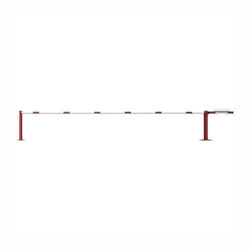 Paceļama barjera ar pretsvaru, ar atbalsta stabu. Atvēršana/aizslēgšana ar piekaramo atslēgu (pieejama arī ar trijstūrveida slēdzeni vai euro-profila cilindra slēdzeni). Stiprināma pie pamatnes ar skrūvēm (iespējams arī iebetonēt – papildus nepieciešama betonējamais enkurs abiem balstiem 360x360x8mm). Ieteicamie betona pamata izmēri galvenajam vertikālajam stabam 550x550x900mm; atbalsta stabam – 400x400x900mm. Izmēri: kopējais platums = 6000mm + 900mm, vidējais (brīvais) platums 6000mm, vertikālais stabs (karsti cinkots un krāsots sarkans), atbalsta stabs no tērauda caurules 70x70mm ar pamatnes plāksni 220x220x8mm, horizontālā barjera (alumīnija caurule ar biezām sieniņām) d=80mm, balta ar sarkanām joslām, augstums virs zemes 950mm. Bloķēšanas mehānisms: pie atbalsta staba, var fiksēt ar galveno atbalsta tapu, kad barjera ir atvērta. Iespējams papildus iegādāties atbalsta kāju enkurus montāžai betonā ar skrūvēm un metāla trosi. Svars: 124.50kg.