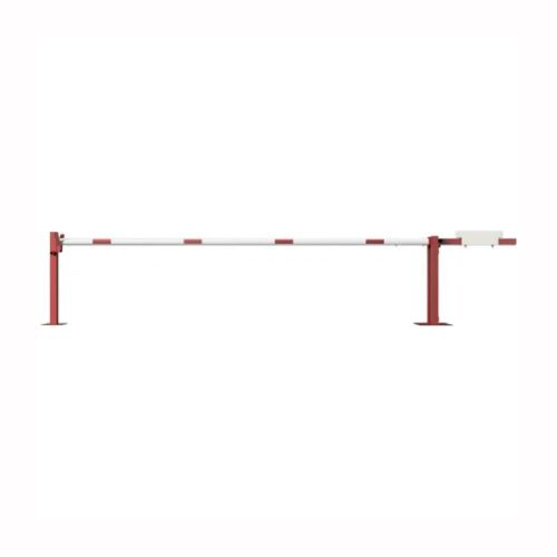 Paceļama barjera ar pretsvaru, ar atbalsta stabu. Atvēršana/aizslēgšana ar trijstūrveida slēdzeni (pieejama arī ar piekaramo atslēgu vai euro-profila cilindra slēdzeni). Stiprināma pie pamatnes ar skrūvēm (iespējams arī iebetonēt – papildus nepieciešama betonējamais enkurs abiem balstiem 360x360x8mm). Ieteicamie betona pamata izmēri galvenajam vertikālajam stabam 550x550x900mm; atbalsta stabam – 400x400x900mm. Izmēri: kopējais platums = 4000mm + 900mm, vidējais (brīvais) platums 4000mm, vertikālais stabs (karsti cinkots un krāsots sarkans), atbalsta stabs no tērauda caurules 70x70mm ar pamatnes plāksni 220x220x8mm, horizontālā barjera (alumīnija caurule ar biezām sieniņām) d=80mm, balta ar sarkanām joslām, augstums virs zemes 950mm. Bloķēšanas mehānisms: pie atbalsta staba, var fiksēt ar galveno atbalsta tapu, kad barjera ir atvērta. Iespējams papildus iegādāties atbalsta kāju enkurus montāžai betonā ar skrūvēm un metāla trosi. Svars: 76kg.
