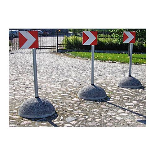 Pagaidu ceļa zīmju pēda. Izgatavota no betona, apdare ar dekoratīvajiem akmentiņiem. Svars: 255kg. Izmēri: diametrs 850mm, augstums 300mm, iekšējais caurums 70mm. Piemērota ceļa zīmju stiprināšanai. Papildus iespējams iegādāties plastmasa gredzenu trubas nostiprināšanai. Uz paletes 100x120cm var uzlikt 1gab. šādu pēdu.