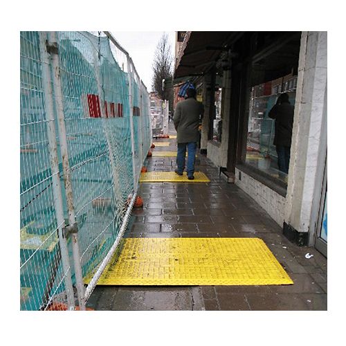 Pagaidu drošības vāks, dzeltens. Izmēri: garums 1600mm, platums 1200mm, augstums 25mm. Iztur svaru līdz 2 tonnām. Pielietojams kā pagaidu drošības vāks ierakumu darbos. Maksimālais nosegšanas platums 900mm. Svars: 33kg.