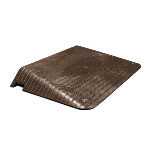 Pagaidu PVC uzbrauktuve (rampa), melna. Izmēri: garums 900mm, platums 580mm, augstums 100mm. Augsta triecienizturība. Pārstrādājama. Stiprināma pie zemes ar 2 skrūvēm (2x8mm). Svars: 19.3kg.