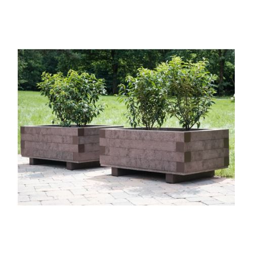 Pārstrādātas plastmasas puķu pods. Izmēri: garums 1400mm, platums 1100mm, augstums 470mm (ar papildus paaugstinājumiem 1400x1400x90mm var pagarināt puķu poda augstumu – paaugstinājums iegādājams atsevišķi), pamatnes biezums 20mm, pamatnes h=90mm, sānu profils 90x90mm. Krāsa: brūna. Izgatavots no pārstrādātas plastmasas. Brīvi stāvošs. Svars: 212kg. Tilpums: 404l. Piemērots publiskās un komerciālās vietās, privātās vietās – gājēju zonās, autosstāvvietās, degvielas uzpildes stacijās, meža takās, parkos u.c. Mūsdienīga neitrāla forma. Puķu pods tiek piegādāts samontētā veidā. Ražots Vācijā.
