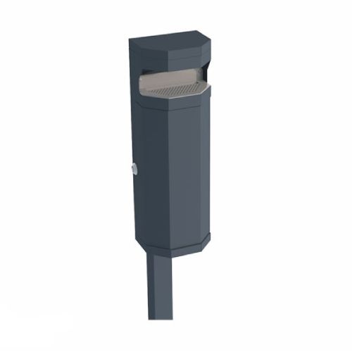 Pelnu trauks. Izmēri: augstums 1055mm, platums 200mm, dziļums 200mm. Izgatavots no cinkota un krāsota tērauda 1mm biezumā, RAL tonī (iespējams arī pilns nerūsējošā tērauda variants). Augšdaļa izgatavota no nerūsējošā tērauda. Pieejamās RAL krāsas: melna RAL 9005; grafīta pelēka RAL 7021; sudraba pelēka RAL 9006; pelēka RAL 9007; brūna RAL 8011; dzeltena RAL 1023; zaļa RAL 6018; sarkana RAL 3002; oranža RAL 2000. Betonējams vai stiprināms pie pamatnes ar skrūvēm (pēc izvēles). Ieteicams novietot ārā vai iekštelpu smēkēšanas telpās. Viegli iztukšojams. Pelnu trauks nostiprināts ar slēdzeni un universālo trīsstūrveida atslēgu.
