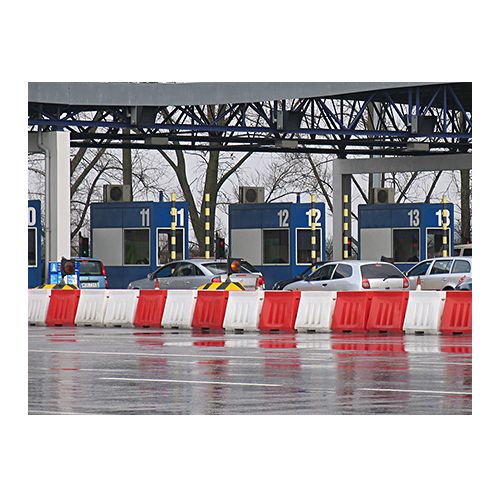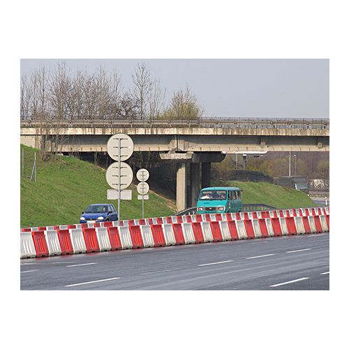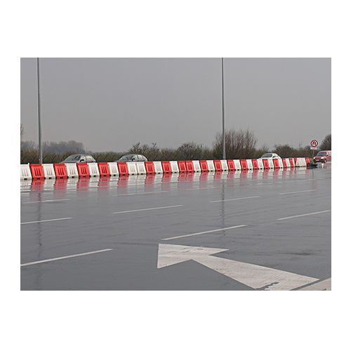 Plastmasas barjera. Pildāma ar ūdeni vai smiltīm, lai palielinātu barjeras svaru. Izmēri: kopējais garums 128cm, efektīvais (lietderīgais) garums – 116cm, augstums – 80 cm, platums – 40 cm. Izgatavota no polietilēna. Svars: 10kg.