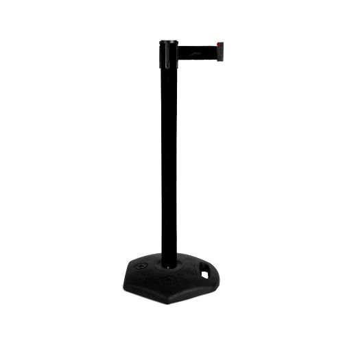 Plastmasas statīvs ar izvelkamu lentu un gumijas pamatni. Statīvs melni krāsots. Stabils. Izmēri: statīva augstums 1010mm, statīva d=63mm, pamatnes d=410x430mm, izvelkamās lentas platums 48mm, lentas garums 3.6m. Pamatne no pārstrādātas gumijas. Izmantojams gan iekštelpās, gan ārā. Lentas pieejamās krāsas: sarkanbalta vai dzeltenmelna. Svars: 9kg.